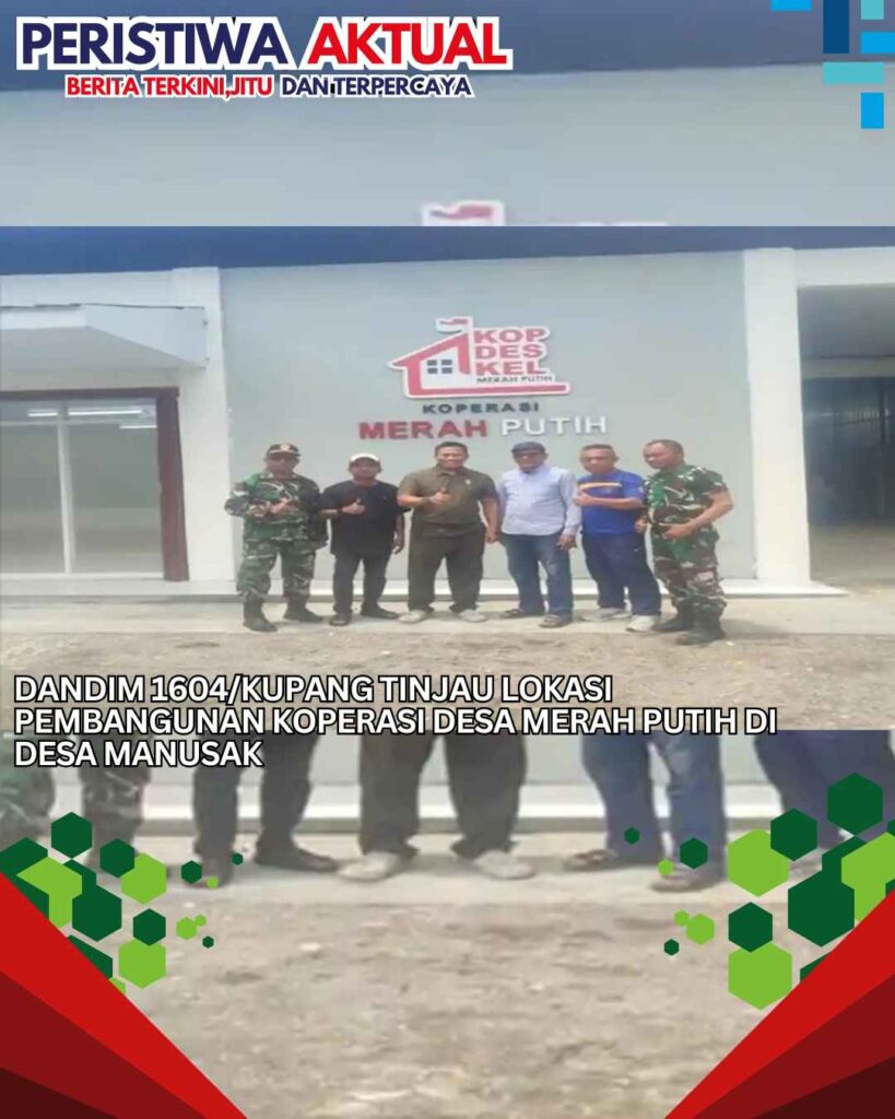 www.peristiwaaktual.com.ǁNTT,8 Februari 2026-Komandan Kodim (Dandim) 1604/Kupang, Kolonel Inf Kadek Abriawan meninjau langsung lokasi pembangunan Koperasi Desa/Kelurahan Merah Putih (KDKMP) yang berada di Jalan Terusan Raknamo, RT 10 RW 04 Dusun 04, Desa Manusak, Kecamatan Kupang Timur, Kabupaten Kupang, Provinsi NTT, Sabtu (7/2/2026). Saat kunjungan tersebut diketahui pengerjaan pembangunan KDKMP di Desa Manusak hampir rampung. Pembangunan fisik Koperasi tersebut telah mencapai 96,30 persen. Dalam kunjungan tersebut, Dandim 1604/Kupang didampingi Perwira Seksi Teritorial Kodim…