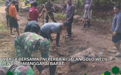 www.peristiwaaktual.com.ǁNTT,23 Februari 2026-Masyarakat Golo Welu bersama Koramil 1630-03/Macang Pacar bergotong royong memperbaiki jalan dari Golo Welu menuju Lewur di Kecamatan Kuwus, Kabupaten Manggarai Barat. Kondisi jalan yang rusak parah membuat akses transportasi masyarakat menjadi sulit. Mereka menggunakan peralatan sederhana untuk membongkat bongkahan batu besar yang selama ini berada di tengah jalan, seperti skop, linggis, dan lainnya. Pengerjaan ini juga menjadi…