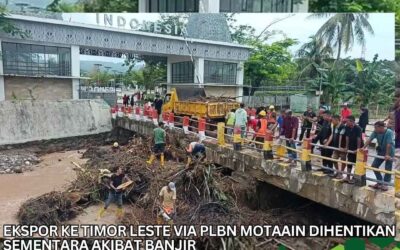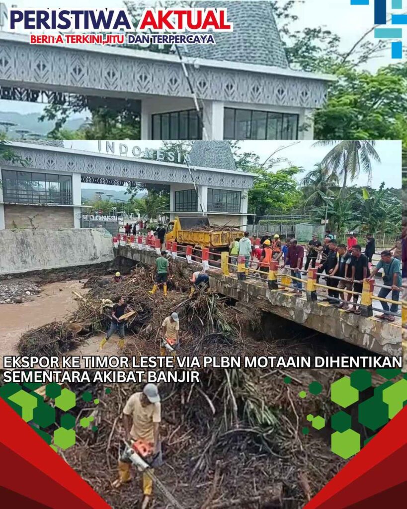 www.peristiwaaktual.com.ǁNTT,9 Maret 2026-Kegiatan ekspor dari Indonesia menuju Timor Leste melalui PLBN Motaain dihentikan sementara pada Senin (9/3/2026). Penghentian tersebut dilakukan menyusul luapan banjir yang terjadi di kawasan perbatasan Motaain-Batugade pada Minggu (8/3/2026) yang menyebabkan gangguan teknis pada fasilitas pemeriksaan di Pos Batugade. Kepala Administrator PLBN Motaain, Maria Fatima Rika, Selasa (9/3/2026) pagi, menjelaskan keputusan tersebut diambil berdasarkan hasil koordinasi antara pengelola Pos Batugade di Timor Leste dengan pengelola PLBN Motaain di Indonesia….