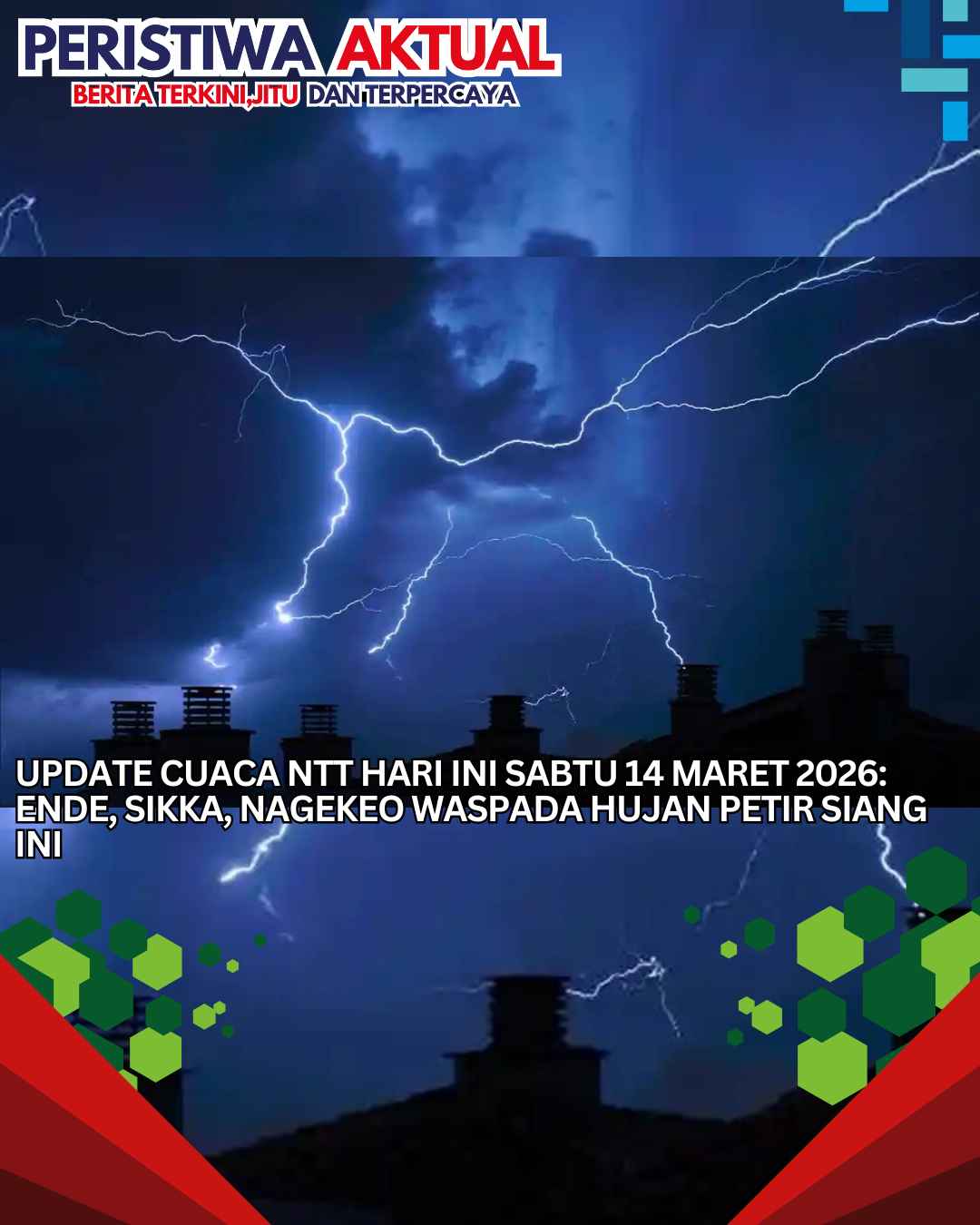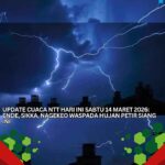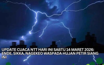 www.peristiwaaktual.com.ǁNTT,14 Maret 2026-Berawan tebal hingga hujan ringan mendominasi Cuaca NTT Hari Ini Sabtu 14 Maret 2026. Namun Badan Meteorologi Klimatologi dan Geofisika ( BMKG ) mengimbau Ende, Sikka dan Nagekeo waspada hujan petir siang ini. Dalam Update Cuaca NTT Hari Ini Sabtu 14 Maret 2026, BMKG mengimbau masyarakat yang berada di ketiga daerah tersebut agar waspada terhadap sambaran petir ketika beraktivitas di luar rumah. Suhu udara di NTT hari ini dilaporkan berkisar antara 17-30 derajat Celcius, cukup sejuk dan…