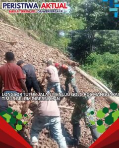 www.peristiwaaktual.com.ǁNTT,2 Maret 2026-Material longsor menutupi badan jalan tepatnya di Dusun Kawit, Desa Golo Ros, Kecamatan Ranamese pada, Rabu 26 Februari 2026 pekan lalu hingga kini belum berhasil dibersihkan. Berdasarkan informasi yang diperoleh masyarakat bersama aparat TNI sudah turun berusaha melakukan pembersih material longsor tersebut, namun material longsor sangat banyak diperparah dengan adanya batu-batu kecil yang masih terus jatuh dari dinding tebing, mengancam…