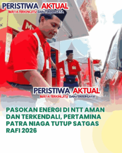 www.peristiwaaktual.com.ǁNTT,6 April 2026-Pertamina Patra Niaga resmi menutup pelaksanaan Satuan Tugas Ramadan dan Idul Fitri (Satgas RAFI) 2026 pada pekan lalu, setelah memastikan pasokan energi selama periode Ramadan hingga Idul Fitri berjalan aman dan lancar. Selama masa arus mudik hingga arus balik, pergerakan masyarakat di wilayah Nusa Tenggara Timur (NTT) terpantau aman dan lancar. Bahkan, angka…