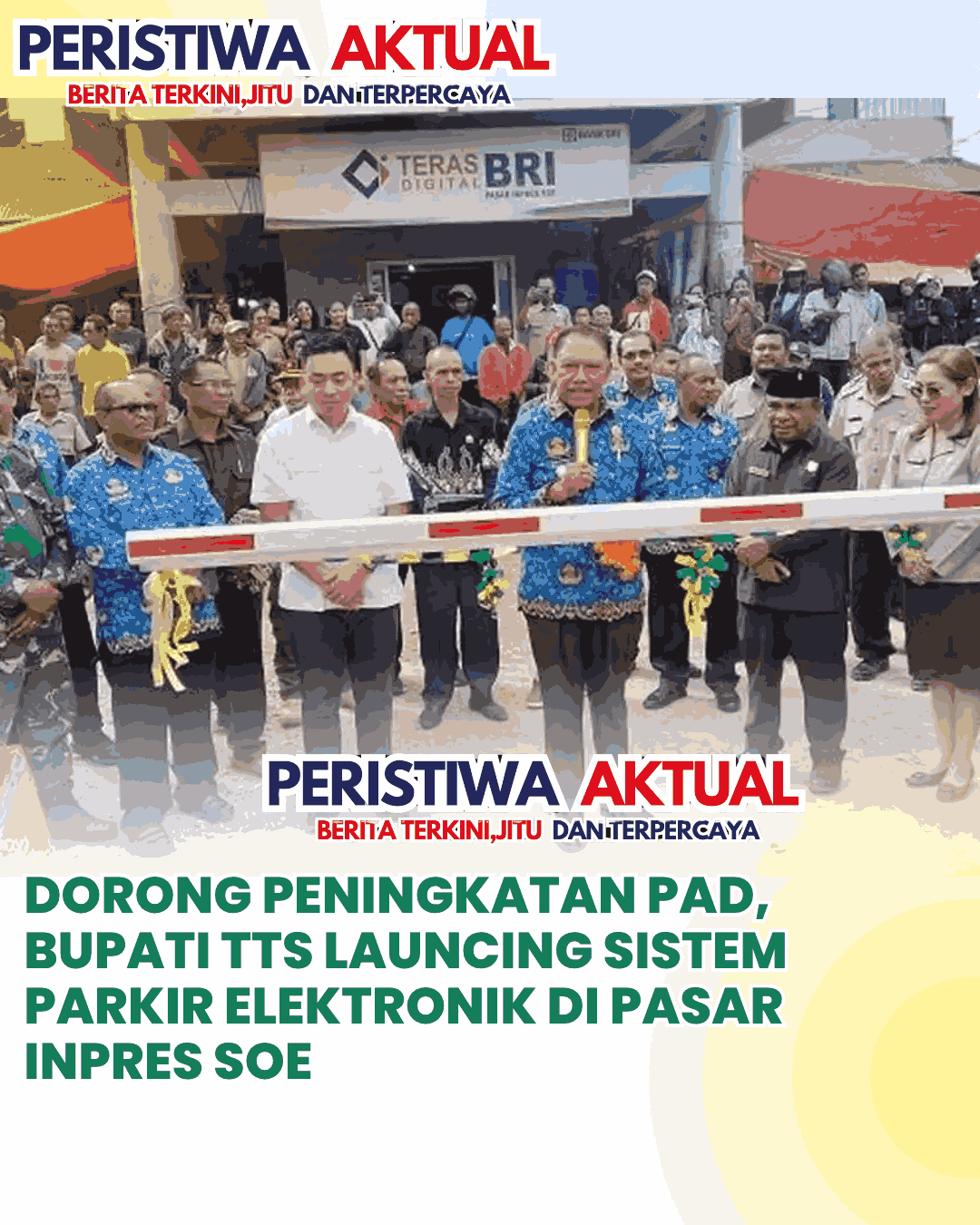 www.peristiwaaktual.com.ǁNTT,18 April 2026-Pemerintah Kabupaten Timor Tengah Selatan (TTS) melaunching sistem parkir elektronik atau e-parking di Pasar Inpres Soe. Hal ini sebagai salah satu upaya digitalisasi daerah, dan peningkatan pendapatan asli daerah. Launcing sistem parkir elektronik ini berlangsung di Area Pasar Inpres Soe, pada Jumat (17/4/2026) pukul 13.00 wita. Hadir dalam kegiatan ini Bupati Timor Tengah Selatan, pimpinan dan anggota DPRD TTS, Sekretaris Daerah Kabupaten TTS, Asisten Sekda Kabupaten TTS, pimpinan PT FTF Globalindo, pimpinan OPD,…