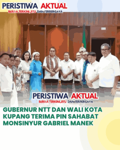 www.peristiwaaktual.com.ǁNTT,23 April 2026-Gubernur Nusa Tenggara Timur Melki Laka Lena dan Wali Kota Kupang dr. Christian Widodo menerima penyematan pin Sahabat Monsinyur Gabriel Manek dari Komunitas Sahabat Monsinyur Gabriel Manek (SMGM) Keuskupan Agung Kupang. Penyematan ini menjadi bentuk penghargaan sekaligus penguatan jejaring pelayanan iman di daerah. Penyematan pin kepada Gubernur NTT dilakukan oleh Romo RD Longginus Bone selaku Moderator Komunitas SMGM pada Rabu (22/4/2026), dan dihadiri jajaran pengurus SMGM Keuskupan Agung Kupang….