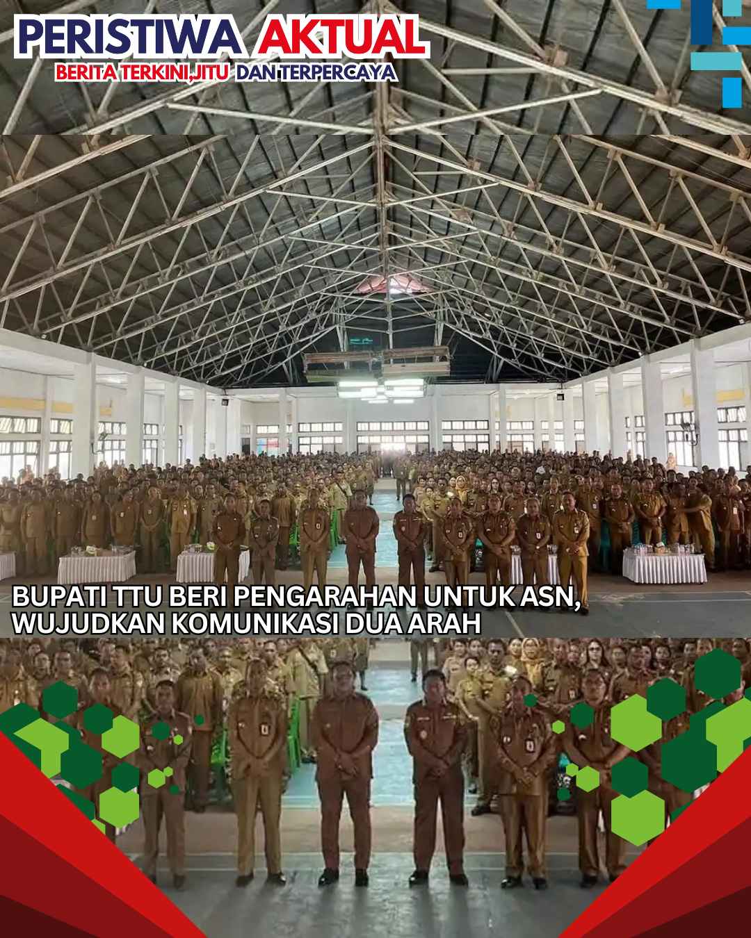 www.peristiwaaktual.com.ǁNTT,2 November 2025-Bupati Timor Tengah Utara (TTU), Yosep Falentinus Delasalle Kebo didampingi Wakil Bupati TTU Kamillus Elu dan Sekretaris Daerah (Sekda) Kabupaten TTU, Fransiskus Fay memberikan pengarahan kepada Aparatur Sipil Negara (ASN) lingkup Pemkab TTU di Balai Biinmaffo, Senin, 3 November 2025.