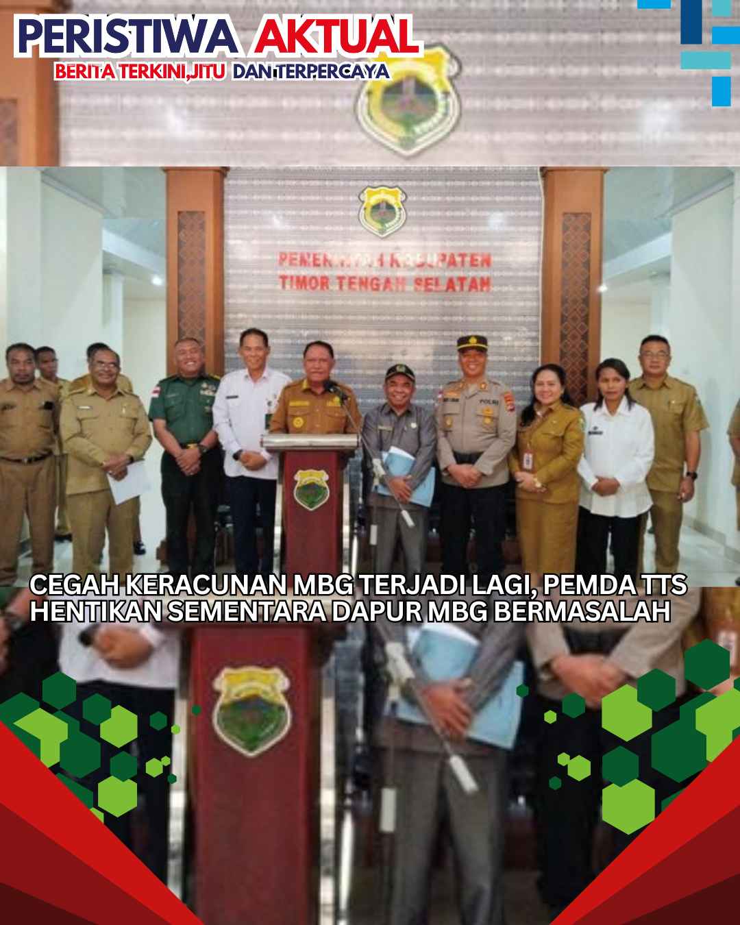 www.peristiwaaktual.com.ǁNTT,7 Oktober 2025-Pemerintah Kabupaten Timor Tengah Selatan (TTS) menghentikan sementara dapur makan bergizi gratis (MBG) yang bermasalah, dan akan aktifkan satuan tugas MBG.