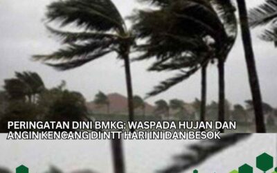 www.peristiwaaktual.com.ǁNTT,26 Oktober 2025- Peringatan Dini BMKG: Waspada hujan dan angin kencang di NTT hari ini dan besok, 26-27 Oktober 2025, ini daftar wilayah terdampak. Berdasarkan laporan resmi Badan Meteorologi Klimatologi dan Geofisika ( BMKG ) Stasiun El Tari Kupang, Sejumlah Wiayah NTT berpotensi mengalami hujan ringan hingga sedang yang dapat disertai petir dan angin kencang berdurasi singkat Berikut Wiayah NTT Terdapam hujan dan angin kencang 26-27 Oktober 2025: Manggarai Barat Manggarai Manggarai Timur Angin Kencang…